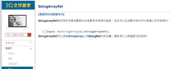 另外想請教StringArrayRef應用在什麼地方,內建函數沒有查到相關範例,謝謝