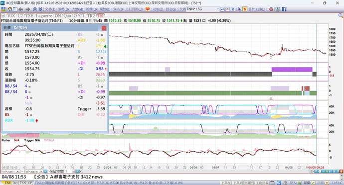 您好,目前TNN報價問題已修復,可以再確認看看。原因是4/7下午電子盤開始交易時間改變造成。