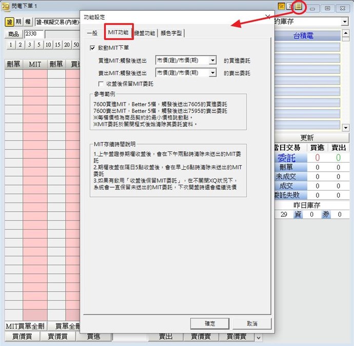 您好,請問是否有請勾選使用"閃電下單"功能右上方的「功能設定→啟動MIT下單」。