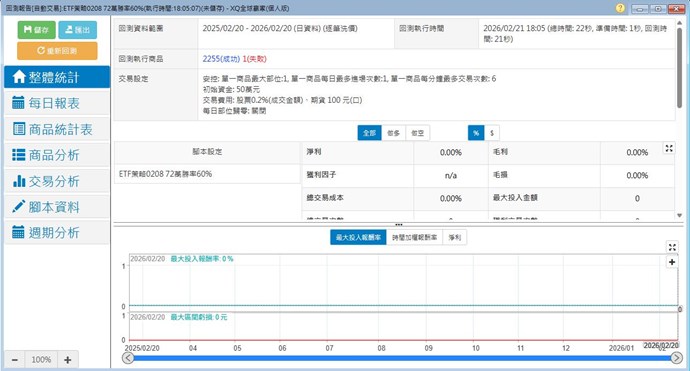 我寫的etf策略2255成功1個失敗 但是回測沒有資料是為什麼