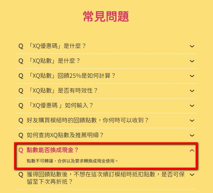 2.XQ點數不可轉讓、合併以及要求轉換成現金使用。
