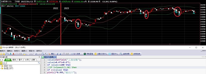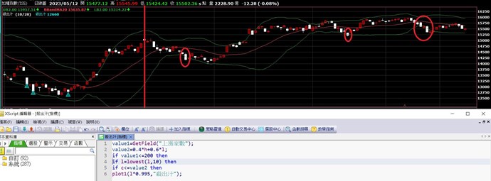 圖中紅圈的地方是應觸發而未觸發的地方,很明顯的這些地方都是十日低,但在XS抓取資料判定後,判定不是。