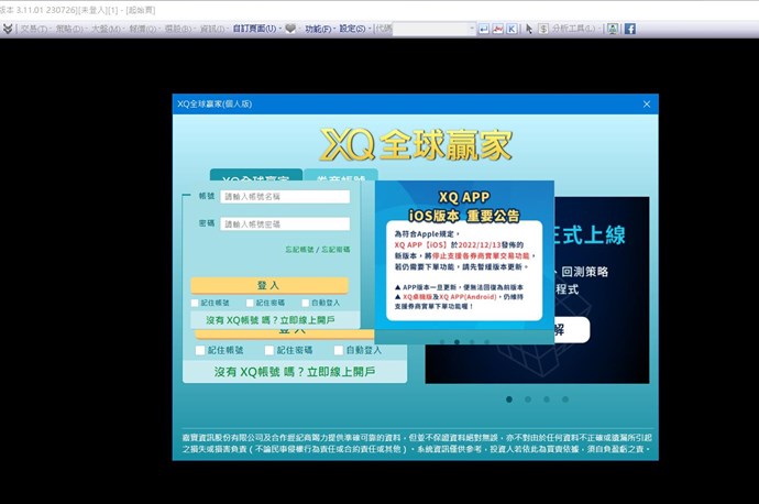 您好,請幫忙將附件ini檔案,放在安裝路徑「C:\SysJust\XQLite」下,再重開XQ試試。