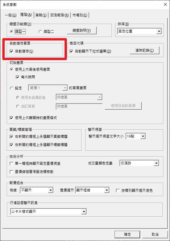 確認有開啟儲存頁面,並且離開頁面時也有點選儲存畫面,假設我的看盤頁面有A-C個頁簽,A-C頁簽的商品盤勢高度都有調整過,