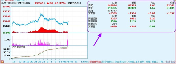 如題,想請問在台指有委買賣口數和委買賣筆數的數值,但不知是否有總買賣成交筆數和總買賣成交口數的數據?