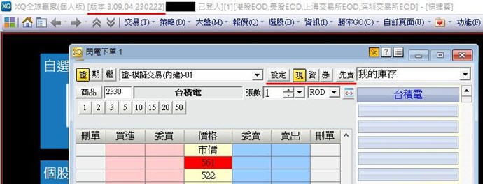 您好,請問XQ全球贏家個人版的【閃電下單】能否新增現股當沖(先賣後買)的選項呢?XQ跟券商配合的軟體,比如台新智多星。或者XQ手機板都有現股當沖先賣後買的選項,感謝