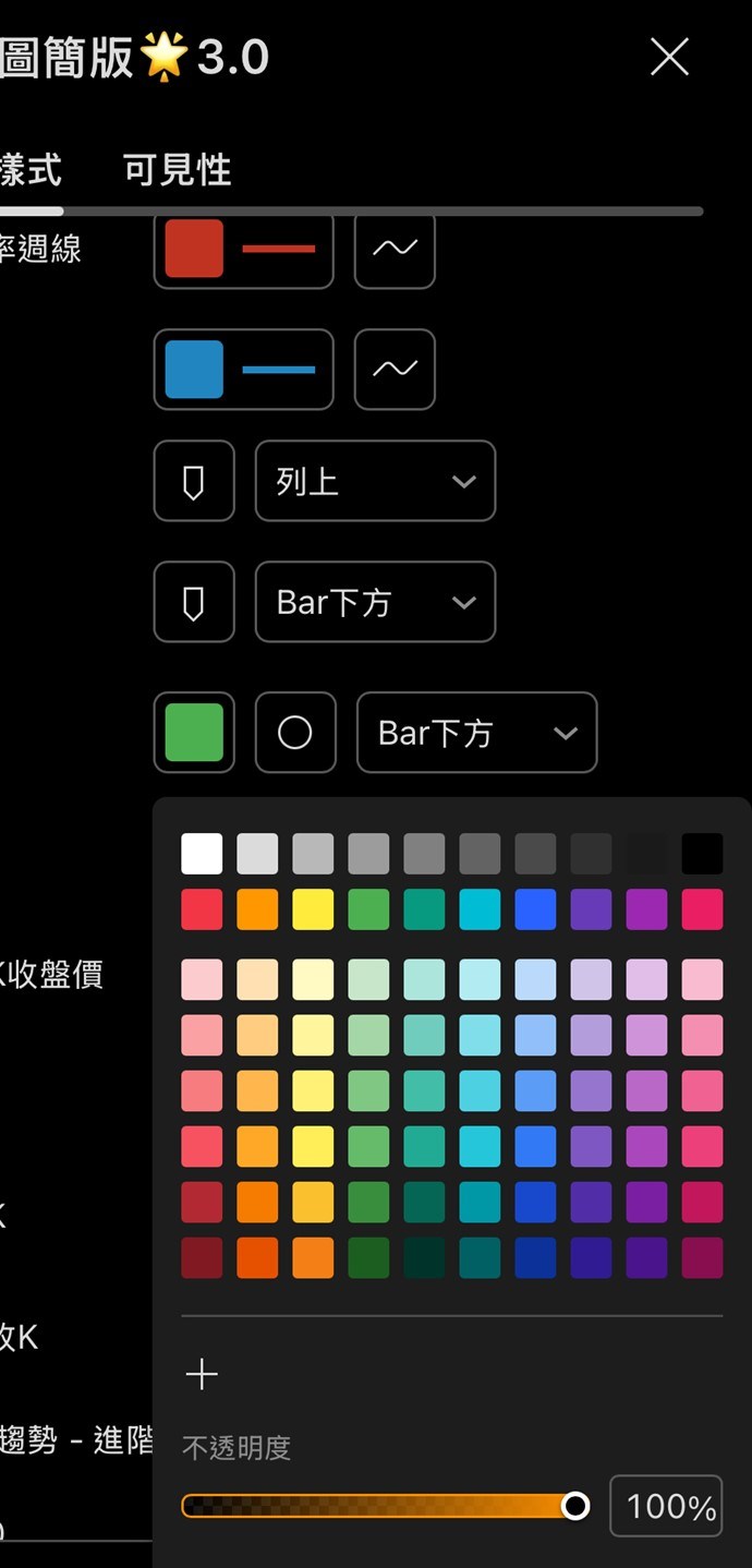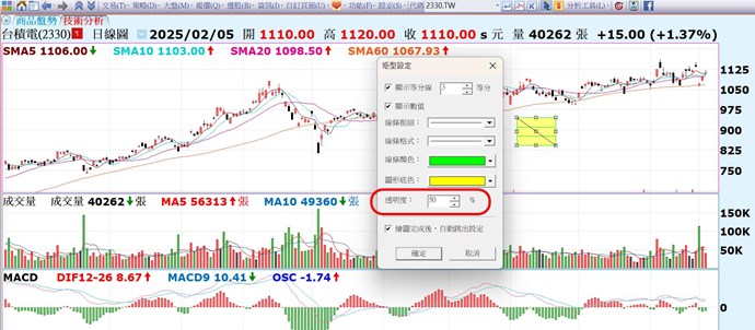 還有透明的部分不是針對畫圖,而是對均線或指標繪圖後可以設定透明度