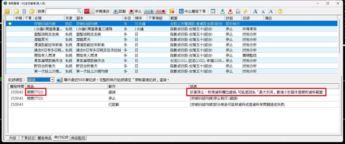 解決方法只有一個,就是排除這檔商品。另外,提醒你,不要從執行商品裡面用商品選上市櫃普通股全部,而應從組合選上市櫃普通股全部。