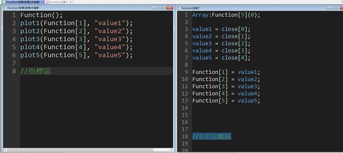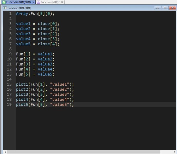 這樣您在呼叫該函數的時候只要傳入一個陣列大小大於5的陣列,其中 1 ~ 5 的位置就會被修改為 close[0] ~ close[5] 的數值。