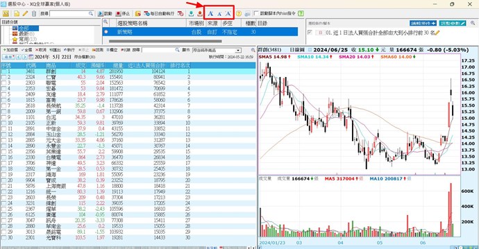 您好,可以使用選股中心畫面上的字體大小調整鍵試看看。謝謝!