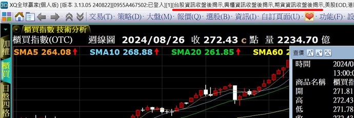 我XQ軟體於2024年8月28日凌晨下載,於8月28日上午開盤後發現XQ的數據依然停留在8月27日收盤時的價格(加權、櫃買、期貨、個股都一樣)。這部分能否幫我確認一下是哪一個步驟有問題。