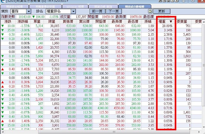 不知道XQ操盤高手要怎麼開出權重的百分比?? 台灣50這個看盤介面可以嗎??