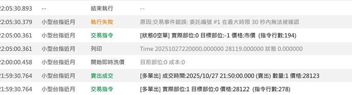 這是下單之後,XQ在30秒之內沒有收到委託回報,所以中斷策略。你是用系統內建的虛擬帳號交易?還是券商的帳號?