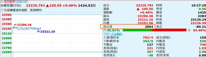 加權或櫃買也有「估計量」,盤中時會送出預估量,每天收盤後系統會清除預估量數值(因為收盤後就是看總量了)。