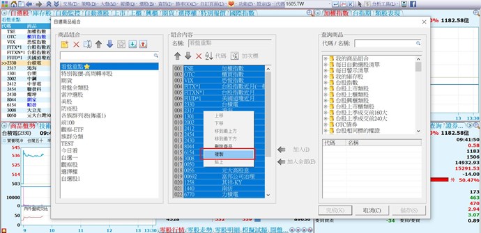 如標題請問下,如何直接把組合a內容整個加到組合b例如我有一個組合都是大盤的指數,有時新建立要追蹤的名單想直接也加入大盤的各項指數