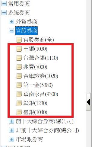 2.XQ是用券商分點的資料,有計算的官股券商如下圖示。