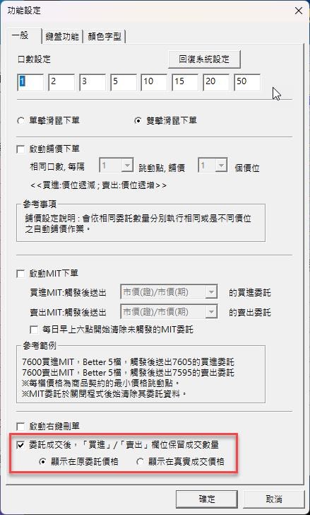感謝小幫手回覆,我原本就有開啟了,不過是選"顯示在真實成交價格",點新委託單原本成交的顯示會消失需要重新整理才會再顯示,