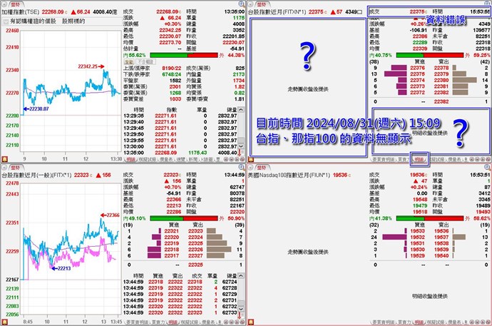 問題1:台指 (FITXN*1) 及 那指 100 (FIUN*1) 沒有資料顯示