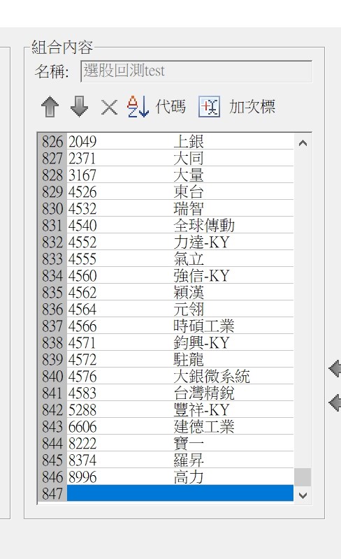自選組合總共有八百多檔股票,回測時選該組合卻只有四百多檔,請問可能是哪裡影響到了嗎?