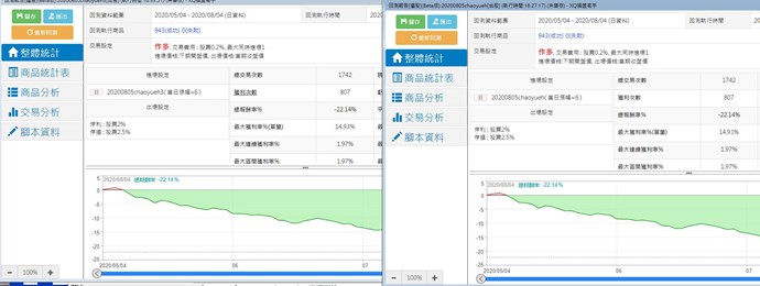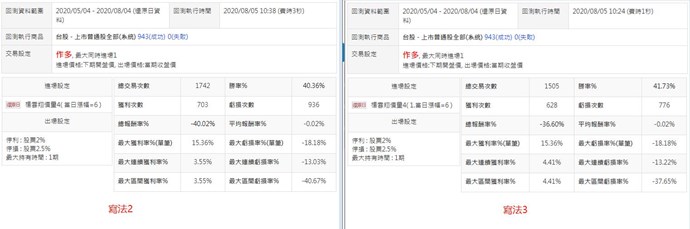 所以只好再用了寫法3,但此時回測結果就不一樣了