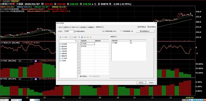 =>小幫手猜想您需要的功能可以在"籌碼大數據"裡面達成,請選擇上方工具列-->策略-->籌碼大數據-->個股進階籌碼