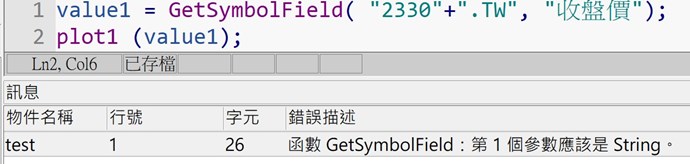 不是直接 GetSymbolField("2330.tw","close");