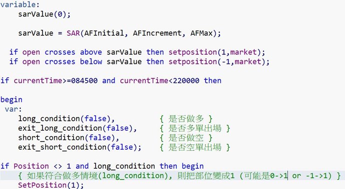 SetPosition(0); { 多單全部出場: 把Position調成0, 使用預設賣出價格 }