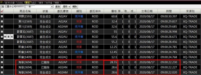 但神奇的是XQ買和賣委託單卻是送出昨日收盤價
