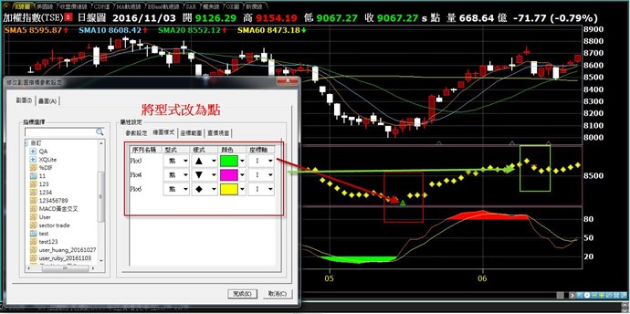 簡單的以 KD 指標為範例 寫了一個小程式 想要點出 K指標 跌破 80 或 升過 20 , 程式如下 :