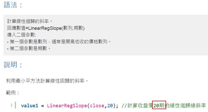 1.請問下圖線性回歸範例中的期數=20,是代表什麼意思是指20天嗎?