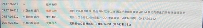 就您提供的圖片上的錯誤訊息,所以猜測是手動干預自動交易。