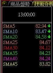 但是,查價視窗中 SMA25, SMA30, SMA35, SMA40, SMA45 的數值右側沒有顯示向上的紅箭頭, 或者向下的綠色箭頭, 為什麼呢? 如下圖: